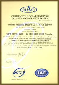 Fushun Yongning Industry Co., Ltd., has been independently exploited and manufactured many kinds of products series. Such as: Automatic Temperature Regulating Series, Thermostatic Element Series, Thermostatic Valves Series, Special Wax Series for particular use.